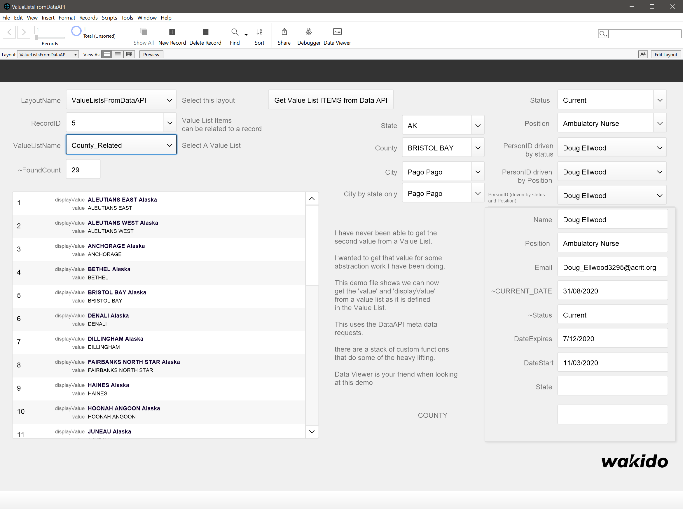 This FileMaker demo has been designed to show you one method for obtaining Value List Items from the DataAPI.
